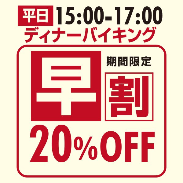 From 15:00 to 17:00 on weekdays, "early discount" for dinner buffet is being held!